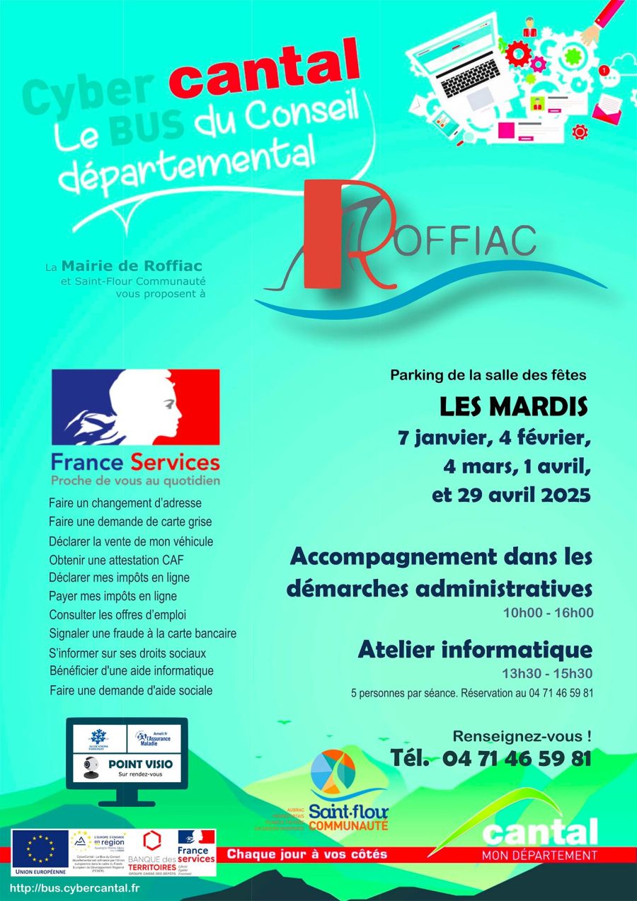 La Mairie de Roffiac et Saint-Flour Communauté proposent des permanences "CyberCantal - le bus".